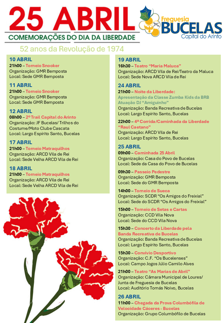 25 Abril, 2026(2 events) Caminhada 25 de Abril