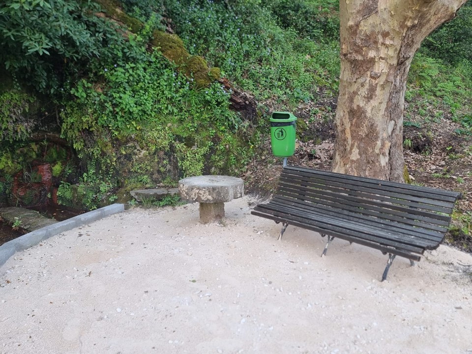Os trabalhos de reabilitação da zona envolvente incidiram na limpeza de vegetação, estabilização do piso, escoamento de águas e substituição de banco.