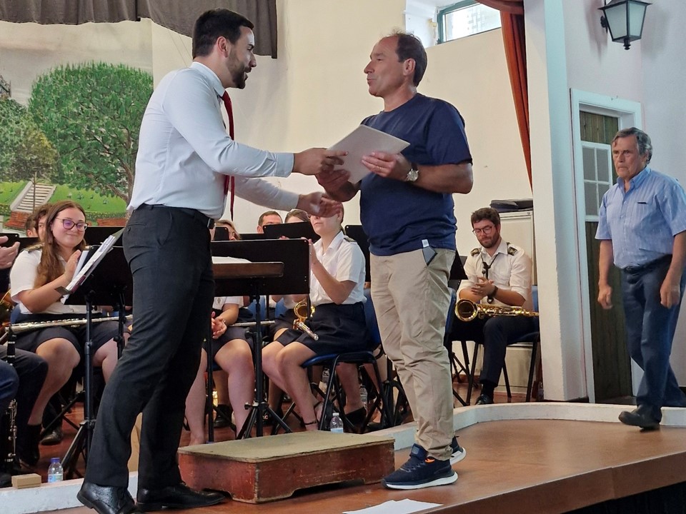 O evento marcou também a homenagem a Dionísio Capricho, antigo e importante músico desta Banda, que o maestro Pedro Almeida quis destacar com a entrega da partitura “Marcha Dionísio Capricho” ao filho do homenageado.