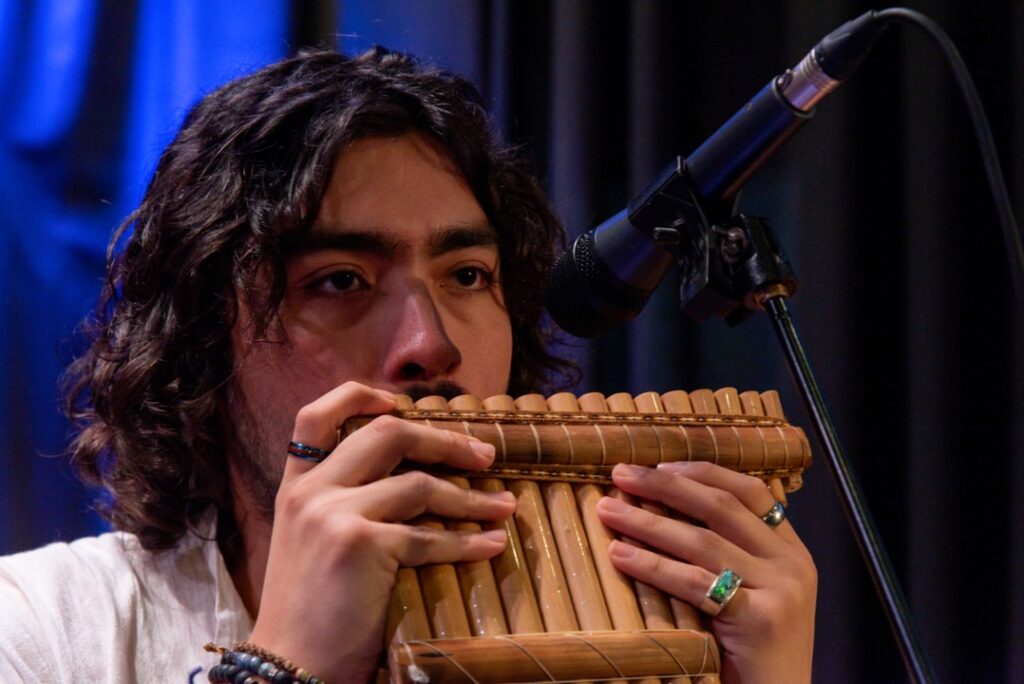 Diego Cervantes, nascido em Lisboa, interpreta instrumentos de sopro andinos, como sikus, quenas e toyos, através de arranjos e composições próprias.