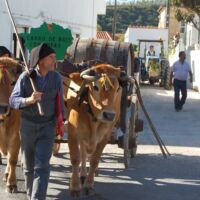 O desfile alusivo ao vinho e às vindimas, é composto por carros alegóricos, representando as várias etapas da produção do vinho. O ciclo do vinho está presente nos carros que compõem o desfile desde a “surriba”, altura em que a terra é cavada para receber a vinha nova, até à taberna, local onde se comercializa o produto final, passando pela várias tarefas de trabalhar a videira, mas também pela confraternização que era proporcionada no almoço que marcava o fim das vindimas.