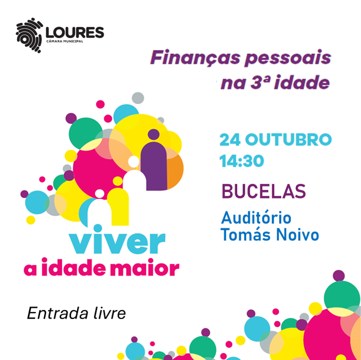 No dia 24 de outubro, às 14:30 horas no Auditório Tomás Noivo, em Bucelas, venha assistir ao workshop “Finanças pessoais na 3ª idade”.