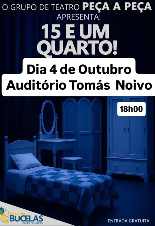 A peça de teatro “15 e Um Quarto!” vai ter lugar no próximo dia 4 de outubro, às 18:00 horas no Auditório Tomás Noivo.